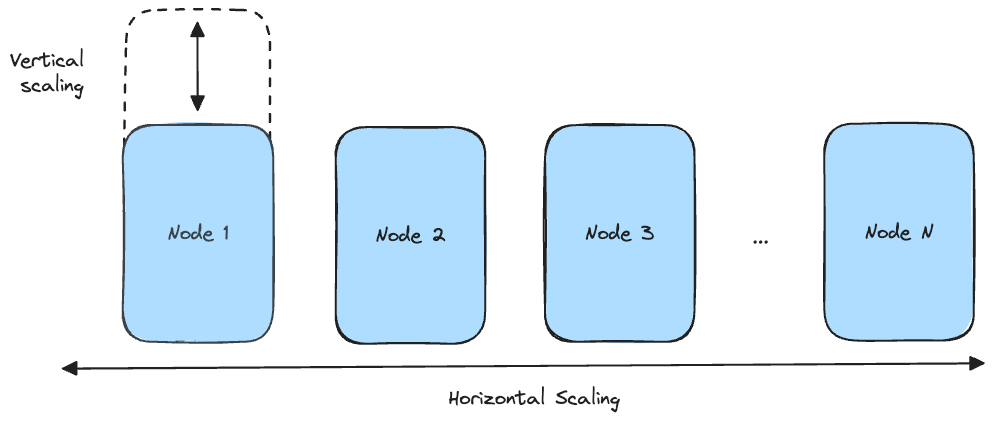 Horizontal scaling is much more attainable. As long as we can coordinate the work effectively, we can scale infinitely. This is how most distributed systems are scaled.